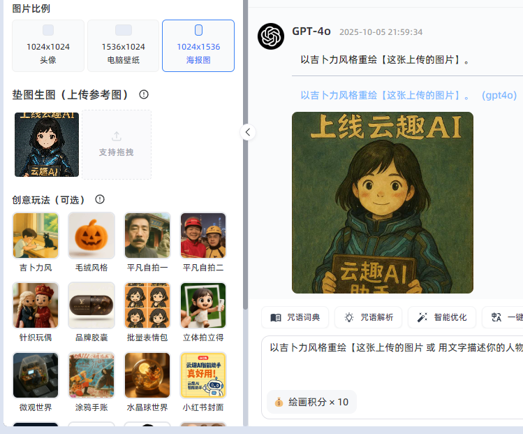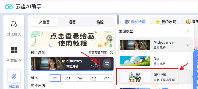 当然,在【AI绘画】板块也有【GPT4o-最新生图】模型